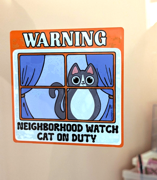 Neighborhood Watch Cat Window Cling - Tuxedo Cat Grey