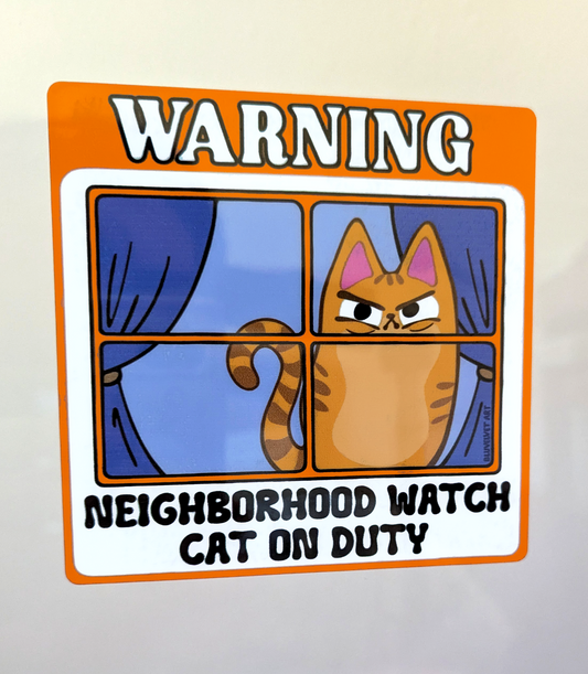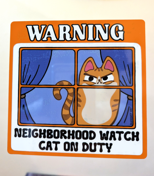 Neighborhood Watch Cat Window Cling - Fluffy Tabby Cat