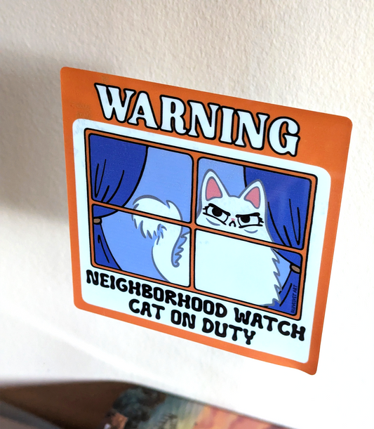Neighborhood Watch Cat Window Cling - White Fluffy Cat Judgy