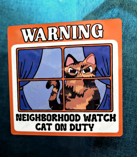 Neighborhood Watch Cat Window Cling - Tortie Tortoiseshell Cat Judgy