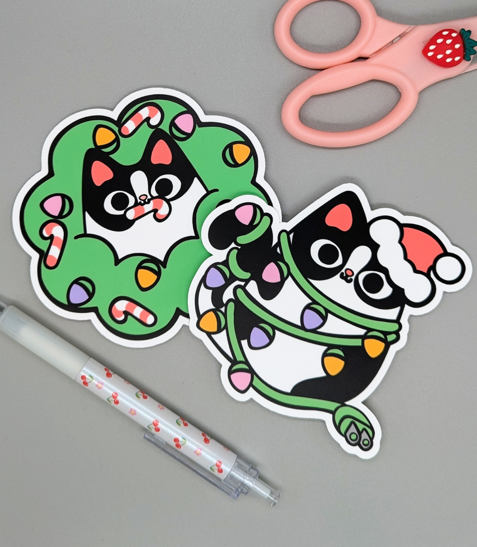 A jumbo Christmas cat sticker set! Each sticker is 4 inches!
