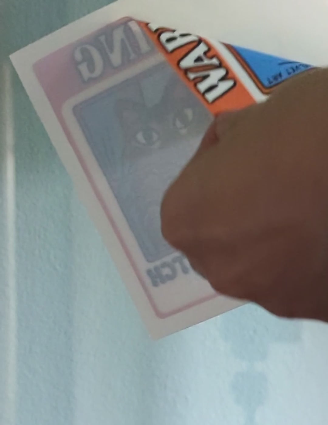 Fluffy tabby cat cling measures 4.5 by 4.5 and art side clings!