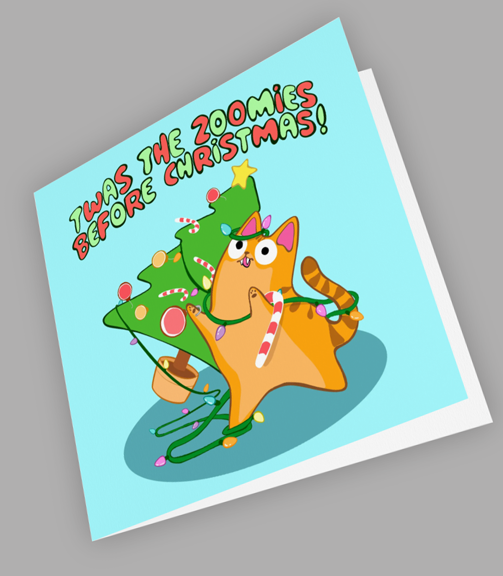 Twas the Zoomies Before Christmas Orange Cat Christmas Card